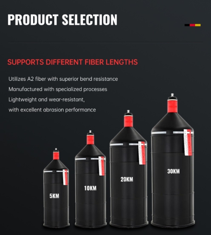 Il FPV DRONE FIBER REEL è adatto anche per applicazioni di comunicazione con robot subacquei, operando in un'ampia gamma di temperature da -10°C a +80°C.Questo kit di droni può facilitare la comunicazione tra robot sottomarini, consentendo uno scambio di dati efficiente in ambienti difficili.